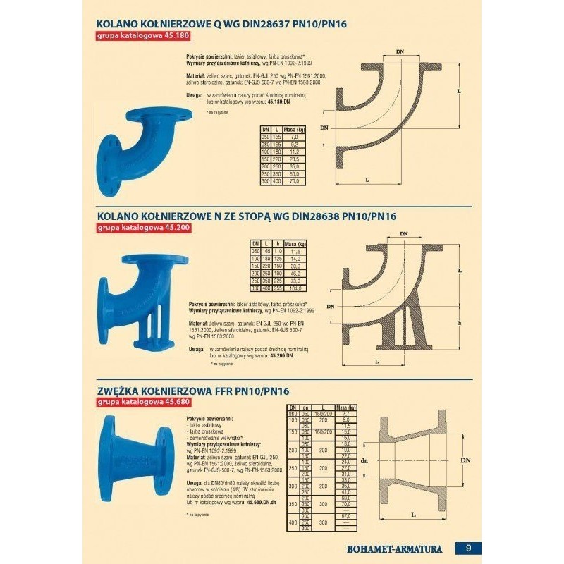 Kolano stopowe N DN80, PN16, GJL-żeliwo szare o numerze katalogowym 44.200.080 w kategorii Kolana kołnierzowe, Kształtki i łączniki żeliwne. Produkt wyprodukowany przez markę BOHAMET-ARMATURA, seria GJL.
