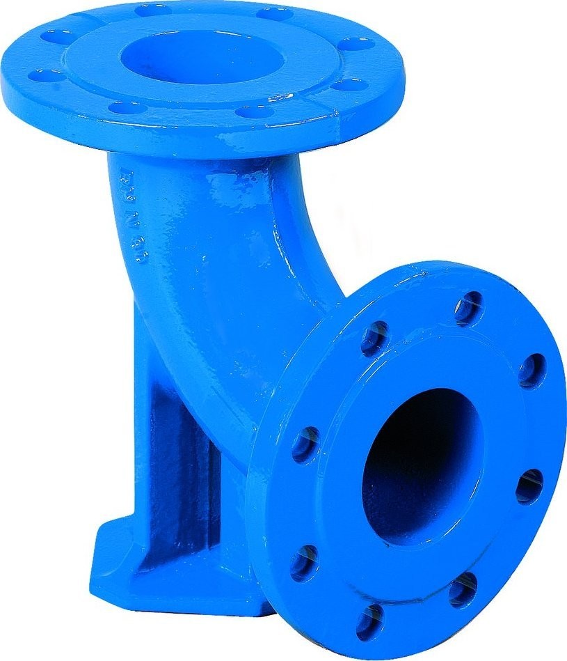 Akwa Kolano kołnierzowe N,ze stopą , DN80, żeliwo szare GJL, kołnierz na 8 otworów