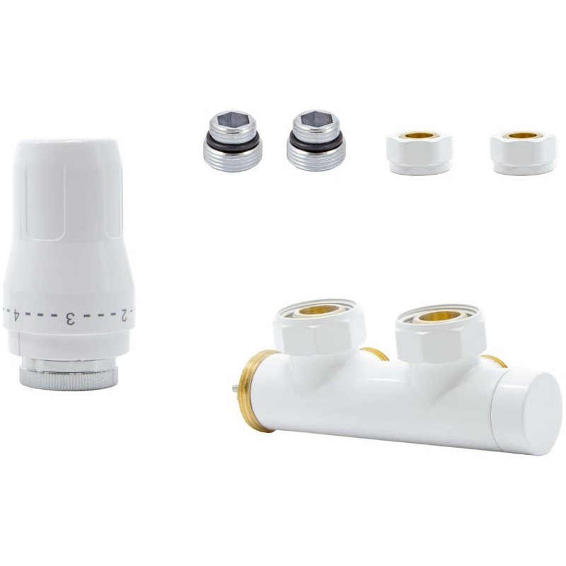 Cechy produktuZestaw charakteryzuje się możliwością zmiany kierunku przepływu czynnika grzewczego poprzez przełożenie wkładek zaworowych, co pozwala na dostosowanie do indywidualnych potrzeb użytkownika. Duo-Plexy współpracują z gniazdem grzejnikowym z gwintem zewnętrznym G3/4 oraz z wykorzystaniem nypla 1/2×3/4 do połączeń z gwintem wewnętrznym G1/2. Zestaw łączy się z rurami PEX i Cu za pomocą złączek zaciskowych.