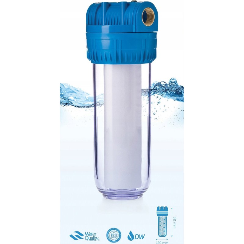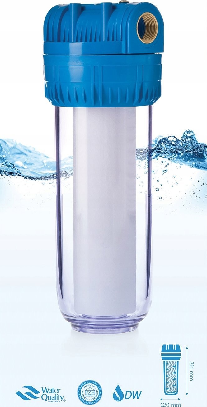 - Przeźroczysta obudowa ułatwia ocenę stanu zanieczyszczenia wkładu