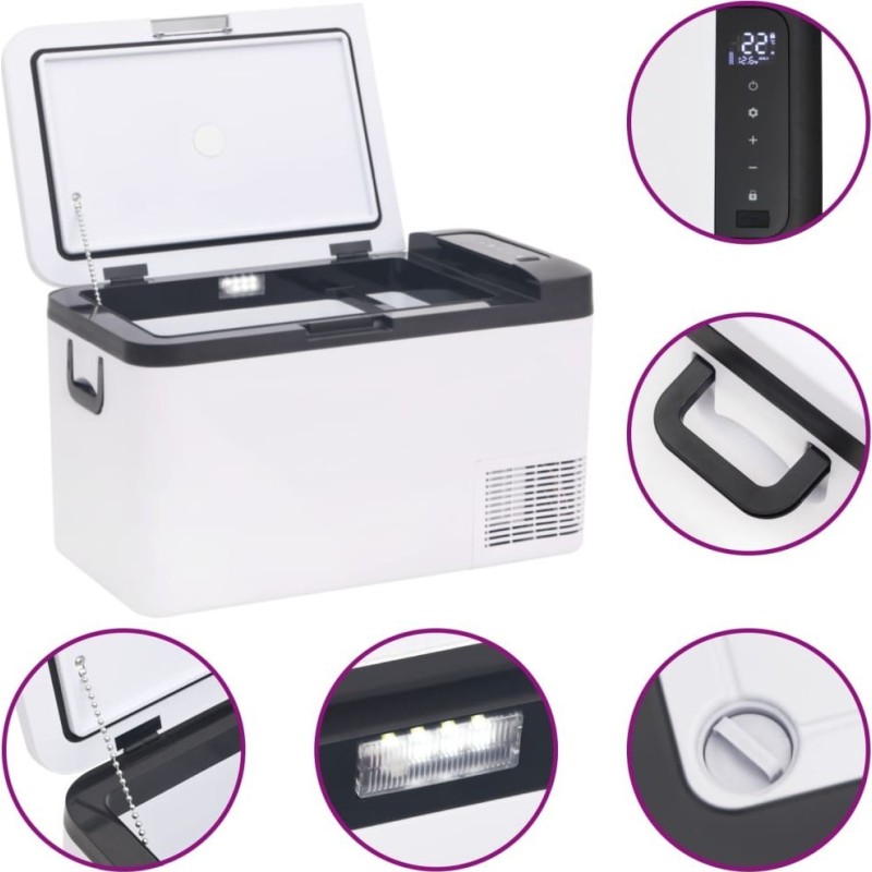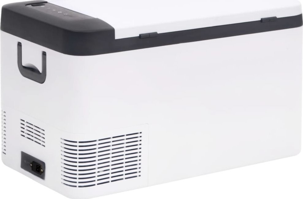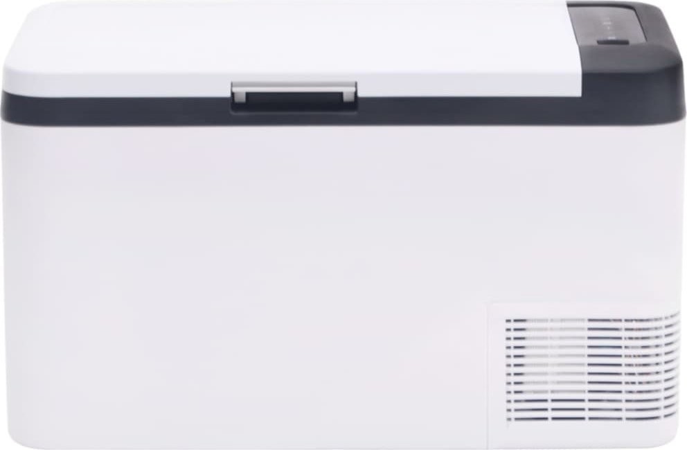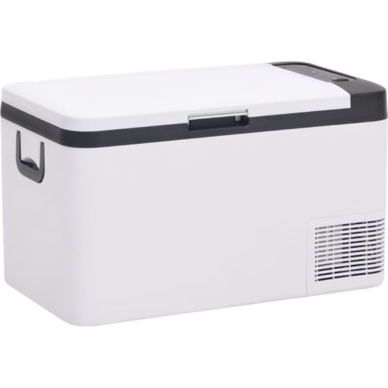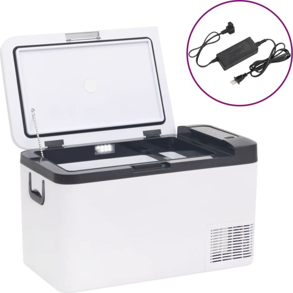 vidaXL Lodówka z uchwytem i zasilaczem, czarno-biała, 25 L, PP i PE