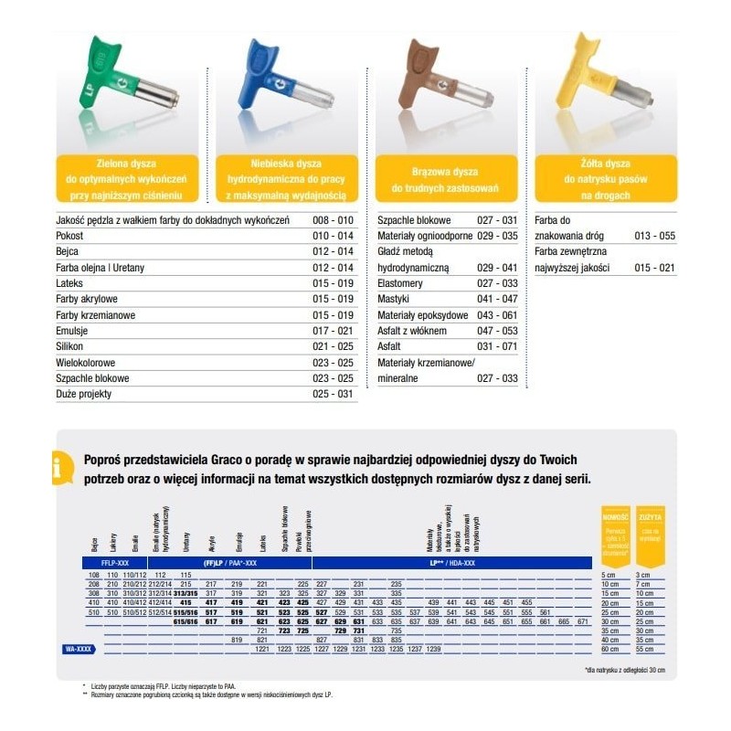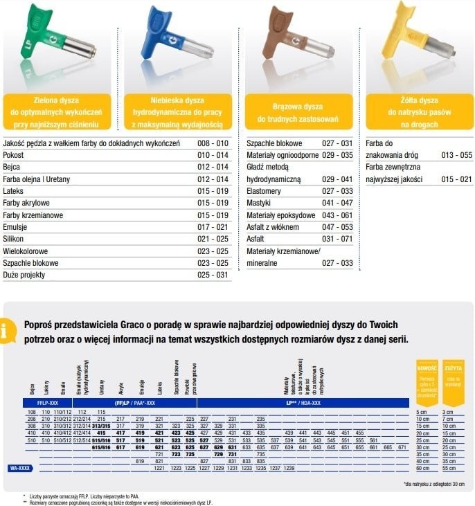 Im mocniejszy agregat tym zaleca się stosowanie dysz o większym numerze!
