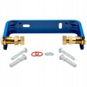 - Zawartość zestawu: wspornik stalowy, półśrubunki mosiężne, zestaw montażowy (2x uszczelki, 2x stalowe wkręty, 2x stalowe podkładki, 2x kołki)