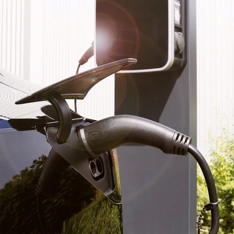 - Moc ładowania do 7,4 kW, prąd 1-fazowy – 32 A przy napięciu znamionowym 230 V AC – stopień ochrony IP44 (z nakładką ochronną) i ochroną przed przejazdem