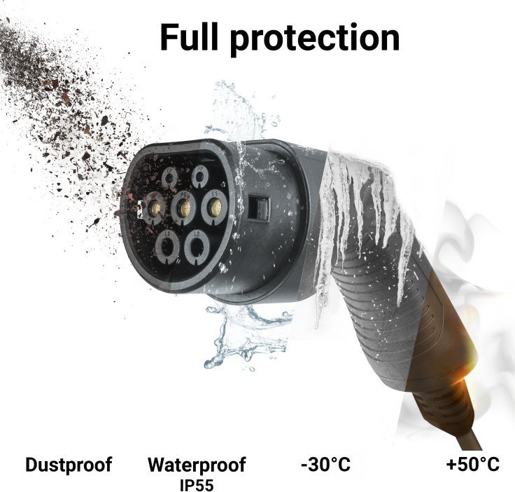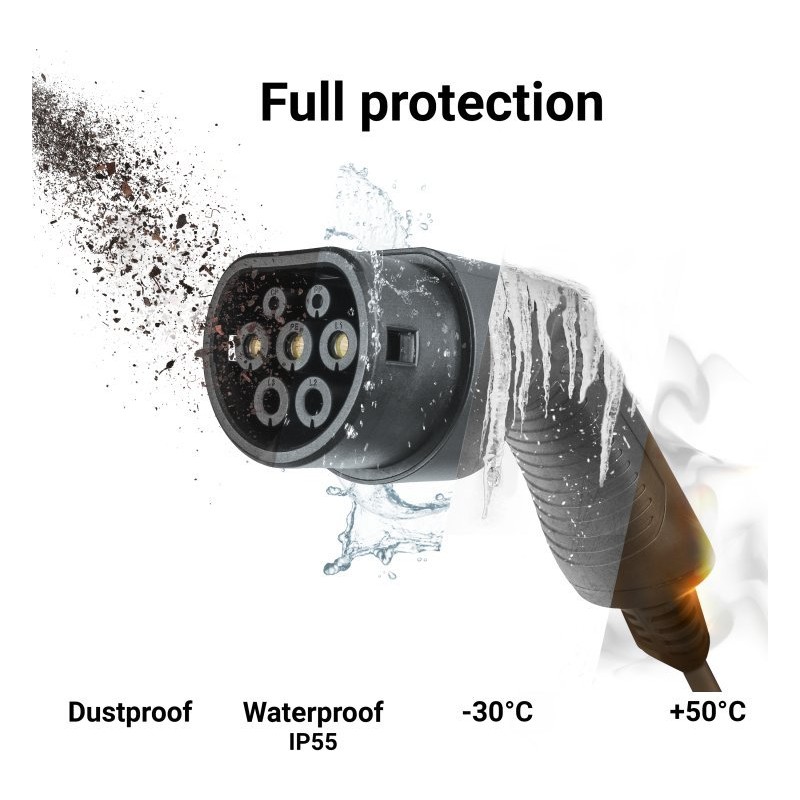 Kabel GC Type 2 możesz bez obaw zabrać ze sobą w podróż po całej Europie. Gniazdo typu 2 jest standardem kompatybilnym z praktycznie wszystkimi stacjami ładowania. Dla pełnej wygody użytkowania producent zadbał również o dodatkowe kwestie takie jak optymalna długość kabla 5 m pozwalająca na dosięgnięcie każdej stacji oraz niska waga 4 kg.