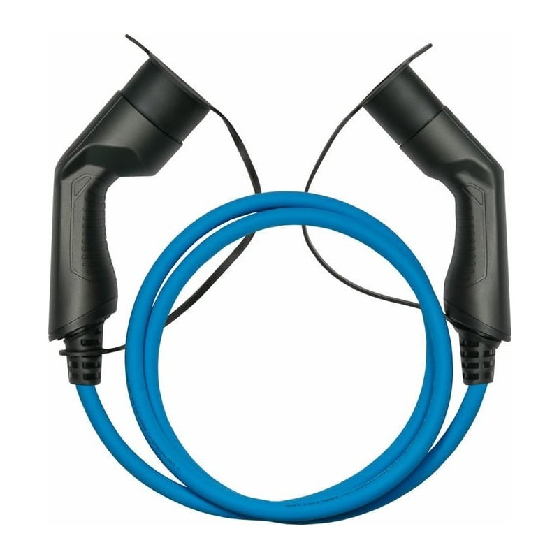 Kabelmeister EVC01-050B. Kolor kabla: Niebieski, Złączka 1: Typ 2, Złączka 2: Typ 2. Maksymalna moc operacyjna (trójfazowa): 11 kW, Maksymalny prąd roboczy (trójfazowy): 16 A, Napięcie pracy: 220 V. Długość kabla: 5 m. Ilość na paczkę: 1 szt.
