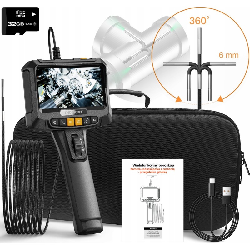 ENDOSKOP INSPEKCYJNY OBROTOWY 360° LED EKRAN SD 32GB IP67 2m KAMERA S10 6mm – Nowoczesne narzędzie do inspekcji