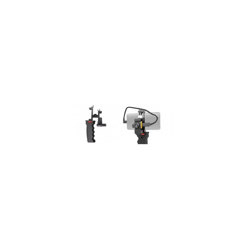 - uchwyt ręczny z mocowaniem na smartfon i kamerę