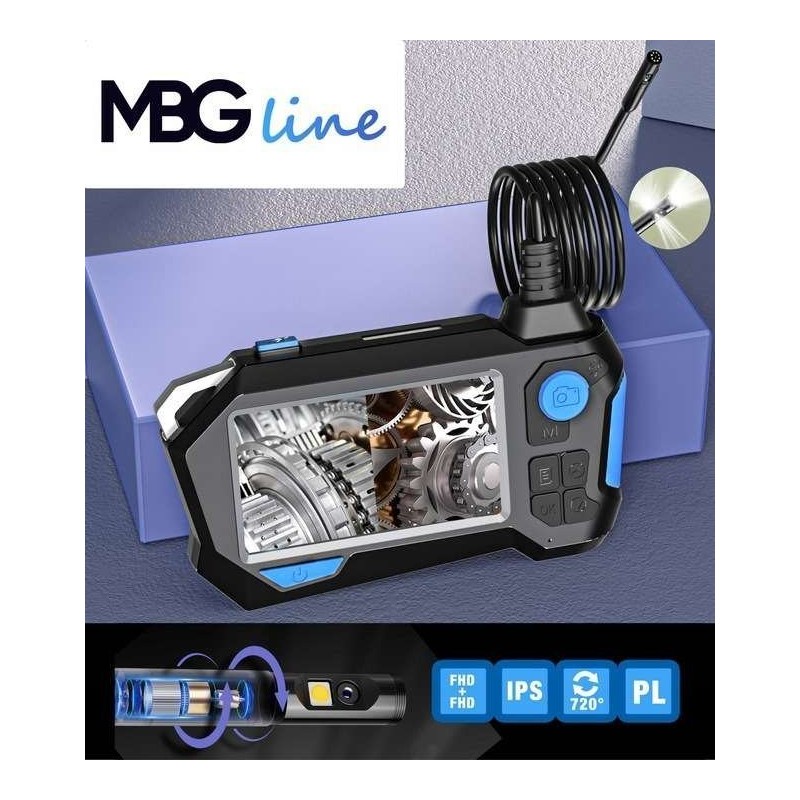 PROFESJONALNA KAMERA INSPEKCYJNA ENDOSKOP MBG LINE 2x 1080p FHD Z EKRANEM 4.5" IPS, ZDJĘCIAMI I NAGRYWANIEM VIDEO - WERSJA PRO 5M z podwójną obrotową kamerą !