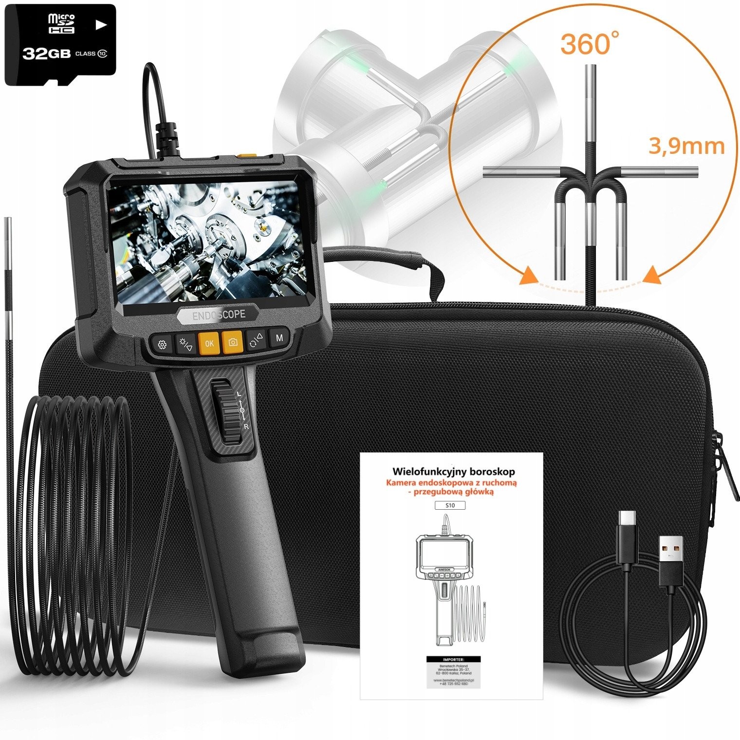 ENDOSKOP INSPEKCYJNY OBROTOWY 360 LED EKRAN 32GB SD IP67 1m KAMERA 3.9mm
