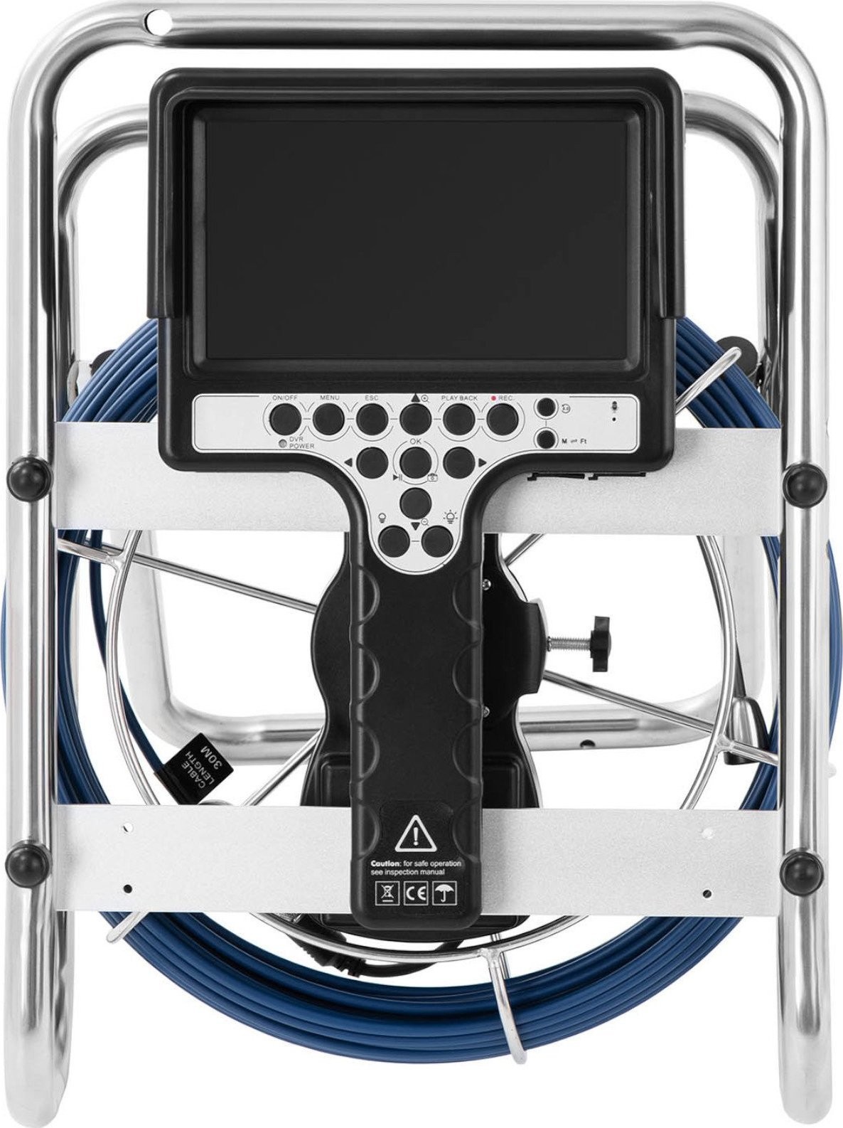 - Nazwa katalogowa: Kamera inspekcyjna - 30 m - 12 LED - 7-calowy wyświetlacz IPS - z szyną