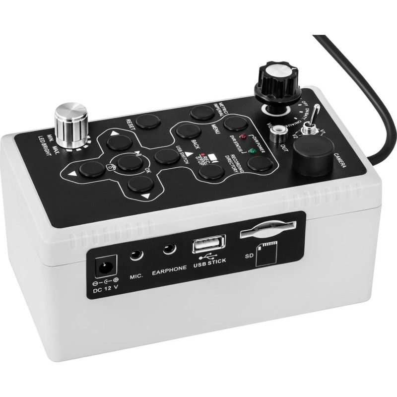 Kod producenta: 10030556Kamera endoskopowa marki Steinberg Systems będzie w stanie skontrolować stan odpływów, rur, instalacji wentylacyjnych i nie tylko. Endoskop sprawdzi się też w budownictwie, wiertnictwie przemysłowym, a nawet podczas badań archeologicznych. Duży zasięg to zasługa przewodu o długości 50 m. Praktyczna szpula pozwala zwinąć sondę i bezpiecznie ją przechować. Dwie gwiazdki prowadzące (40, 80 mm) dostosowują kamerę do średnicy rury. Głowicę wyposażono w 12 diod LED oświetlające ciemne zakamarki. Obraz można powiększyć nawet 8-krotnie. Pozwala to uzyskać bardzo wyraźne filmy i zdjęcia. Kolorowy ekran TFT LCD służy do podglądu na żywo. Przekątna 7 cali i tryb wyświetlania w formacie 16:9 lub 4:3 wpływają na dobrą widoczność obrazu. Ponadto na monitorze zobaczysz filmy i zdjęcia zapisane na karcie SD.Cechy produktu:- Zasięg - przewód o długości 50 m.- Widoczność - kamera z 12 diodami LED,- Praktyczność - możliwość robienia zdjęć i nagrywania filmów z dźwiękiem na karcie SD,- Ergonomia - kolorowy ekran TFT LCD 7 cali,- Mobilność - praktyczna walizka transportowa.Parametry techniczne:- Model - SBS-EC-500- Nr katalogowy - 10030556- Stan artykułu - Nowy- Zasilanie - 100-240 V 50/60 Hz 1,5 A- Bateria - Wbudowana bateria litowo-jonowa 4400 mAh / 12,6 V- Materiał obudowy - Aluminium- Wyświetlacz - LCD- Rodzaj wyświetlacza - Kolorowy ekran TFT 7"- Rozdzielczość matrycy - 1/4"- Wymiary głowicy - 23 x 120 mm- Zakres obrotu głowicy - 90- Długość wysięgnika sondy - 50000 mm (Ø5 mm)- Kąt widzenia - 105- Pamięć - Karta SD 8 GB (maks. 256 GB)- Port USB - Tak- Lampa LED - Tak- Liczba diod LED - 12 szt.- Automatyczne wyłączanie - Nie- Klasa ochrony - IP68- Instrukcja obsługi - Tak- Wymiary (DxSxW) - 47,50 x 18,50 x 40 cm- Waga - 7,95 kg- Wymiary wysyłki (DxSxW) - 50 x 20 x 42,50 cm- Waga wysyłki - 8,80 kgW zestawie:- Ekran 7",- Walizka,- Przewód łączący,- Bęben kablowy,- Przewód,- Głowica z kamerą 23 mm,- 2 gwiazdki prowadzące (40, 80 mm),- Akumulator,- Ładowarka,- Karta SD 8 GB,- Pendrive,- Mikrofon,- Śrubokręt,- Pilot- Instrukcja obsługi....