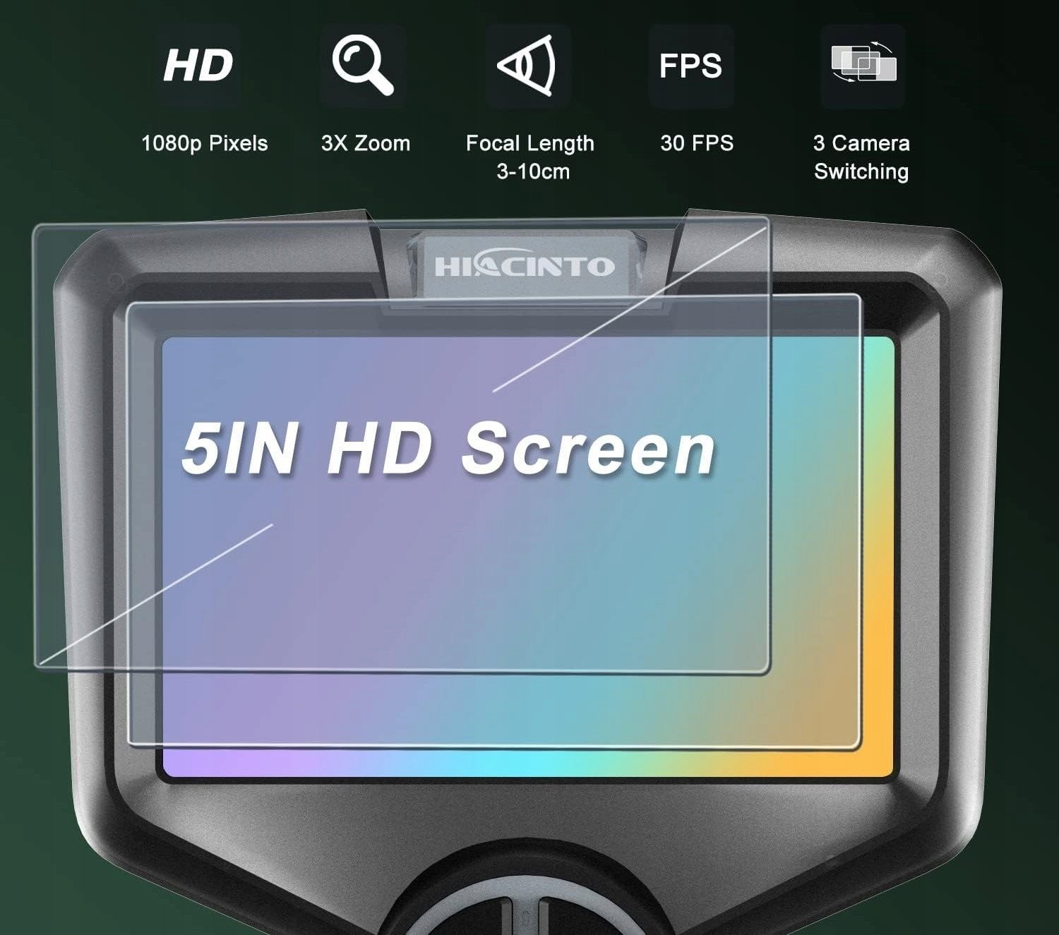 - ✅Wyświetlacz na dużym ekranie: Nasza profesjonalna kamera endoskopowa ES520 jest wyposażona w duży ekran IPS o rozdzielczości 5 cali, który oferuje wysoką jakość obrazu i płynność. Wyświetlacz ma 3-krotne powiększenie i technologię odwracania, dzięki czemu możesz nagrywać i oglądać filmy i obrazy bezpośrednio, bez konieczności pobierania oprogramowania lub łączenia z Wi-Fi.