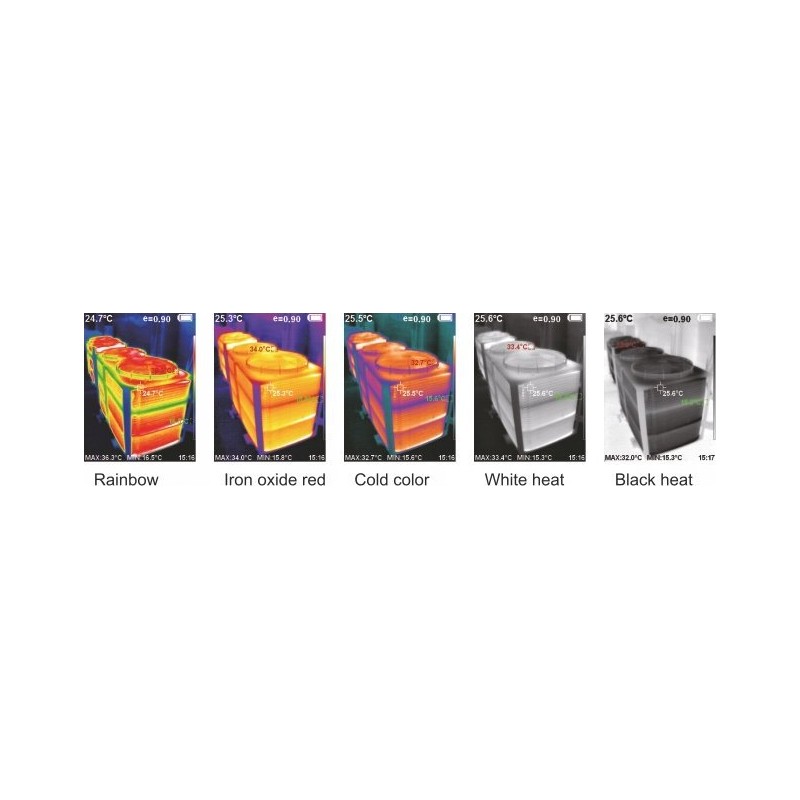 - Możliwość wyboru palety kolorów: do wyboru 5 różnych palet kolorów: Rainbow, Iron oxide red, Cold color, White heat, Black heat