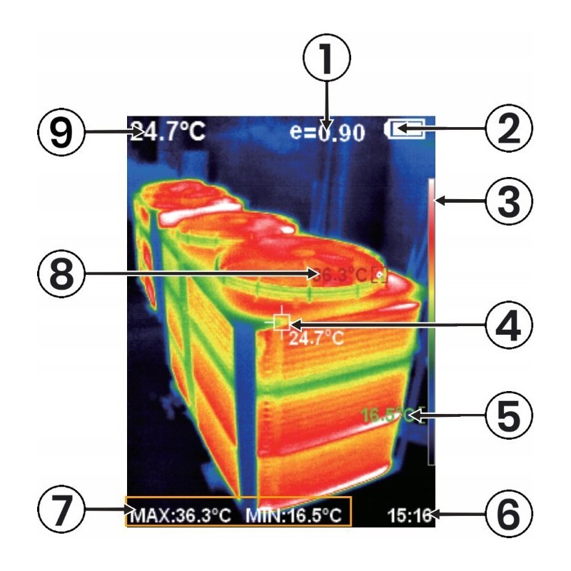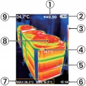 Kamera w sposób przejrzysty i intuicyjny wyświetla rozkład temperatury obszaru zarejestrowanego przez obiektyw podczerwieni. Różnice temperatur są przedstawione za pomocą szerokiej palety kolorów na wbudowanym ekranie.