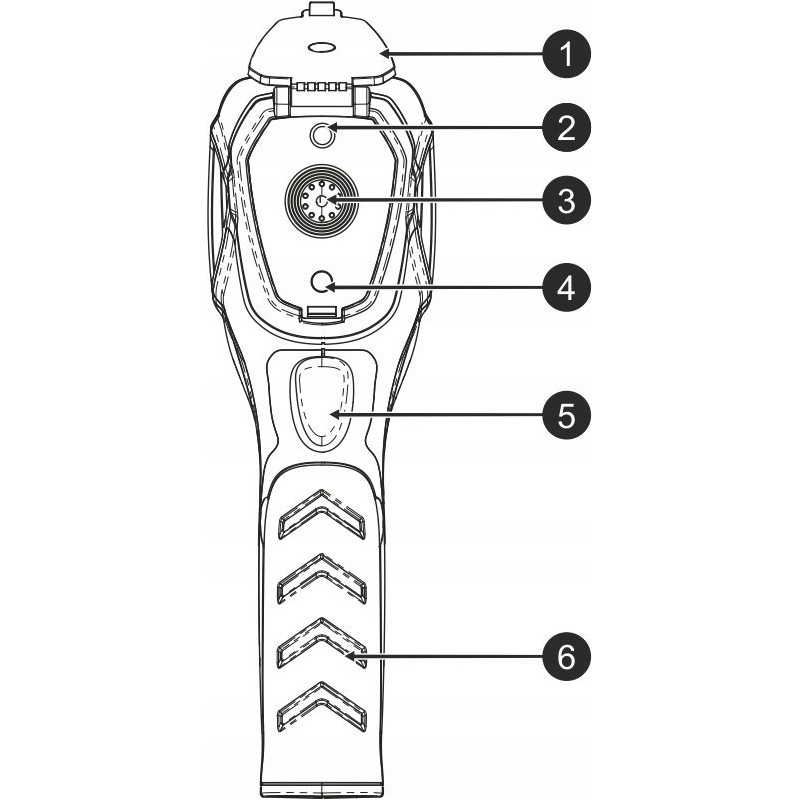 - Spust przechwytywania obrazu (migawki) oraz uruchamiania podświetlania LED (przytrzymaj długo).