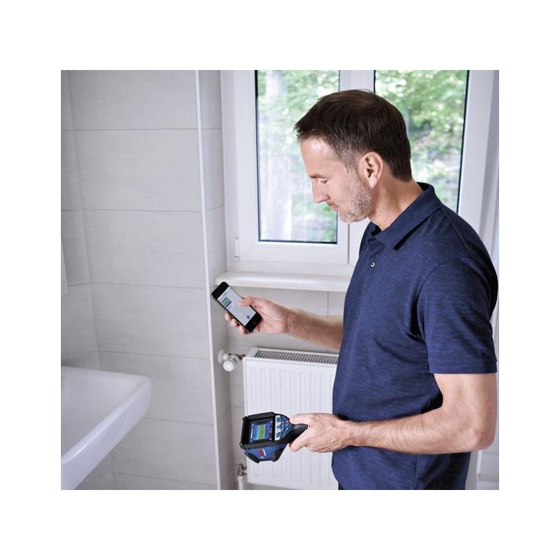 Błyskawiczna wizualizacja różnic temperatur i łatwa dokumentacja wyników - wystarczy pobrać darmową aplikację BOSCH Thermal, dzięki której użytkownik może zapisać i wysłać wyniki wykonanych pomiarów. Następnie pokazać go swojemu klientowi na większym ekranie, wyróżnić określone obszary obrazu lub dodać stosowne komentarze, po czym wysłać obraz termiczny pocztą e-mail w celu ustalenia koniecznych prac lub podjęcia określonych działań.
