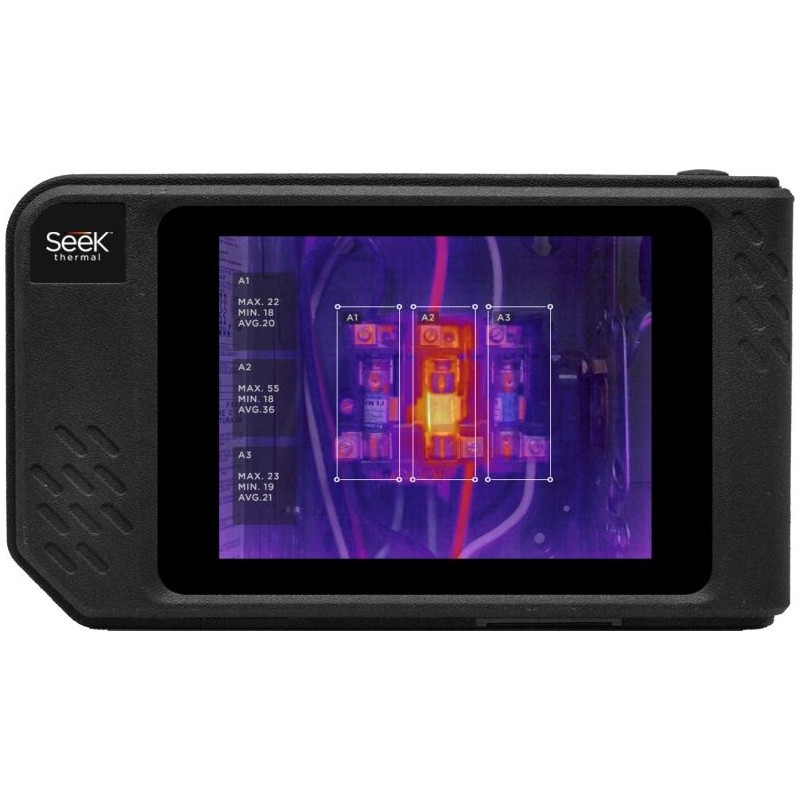Wykrywa temperatury w zakresie od -40°C do +330°C. Dzięki zastosowanej technologii SeekFusion™, czujnikowi Thermal Sensor o dużej czułości 320x240 pikseli, 16-krotnie większej, niż inne urządzenia w porównywalnej cenie oraz szerokiemu 57-stopniowemu polu widzenia odczyt jest bardziej precyzyjny. Pozwala na natychmiastową analizę zrobionego zdjęcia przy pomocy wbudowanych narzędzi pomiarowych. Dodanie pomiarów punktowych i pól temperatur przyspiesza tworzenie raportu w miejscu awarii, który, dzięki Wi-Fi, można od razu udostępnić na smartfonie lub tablecie. Urządzenie posiada również wbudowany uchwyt do statywu, który ułatwia pracę i umożliwia ciągły monitoring. Dzięki swoim kompaktowym rozmiarom jest bardzo poręczna. Sprawdza się w trudnych warunkach. Działa zarówno w dzień, jak i w nocy. W zestawie dołączona jest ułatwiająca przenoszenie smycz na nadgarstek. Analiza na urządzeniu