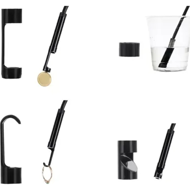 - 4 KOŃCÓWKI W ZESTAWIE – kamera posiada aż 4 wymienne końcówki. Każda z nich ma inną funkcję (końcówka klasyczna, hak, magnes, lusterko ). Kamera jest połączona z długim przewodem, który jest bardzo elastyczny i wytrzymały. W łatwy sposób możesz dotrzeć do nawet bardzo trudno dostępnych miejsc i zobaczyć, co jest przyczyną usterki.