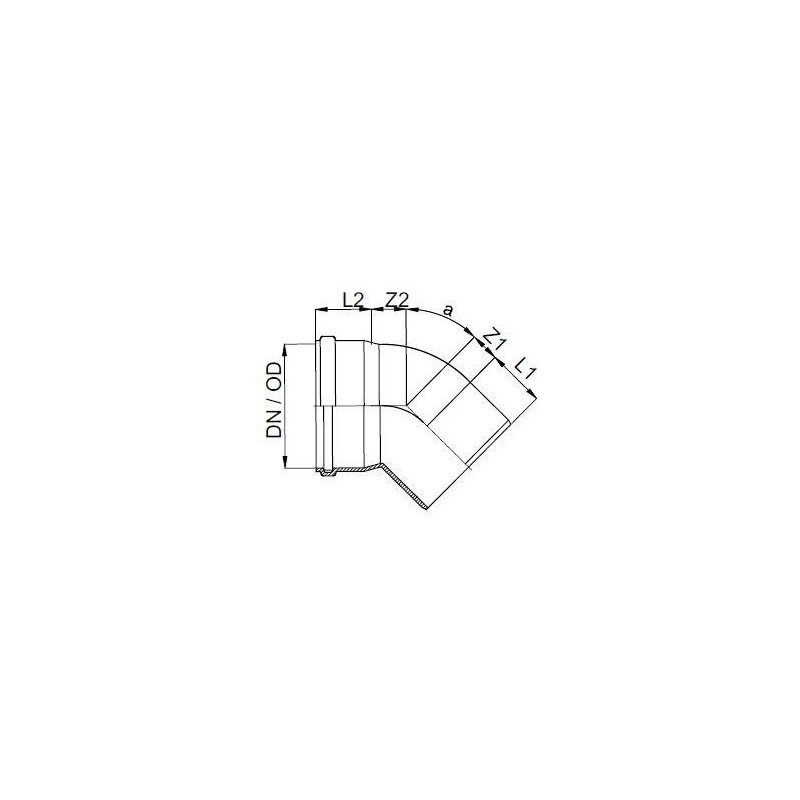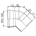 - Wymiary: DN=250mm, Stopnie[o]=45, Z1=59mm, Z2=73mm, L1=134mm, L2=121mm