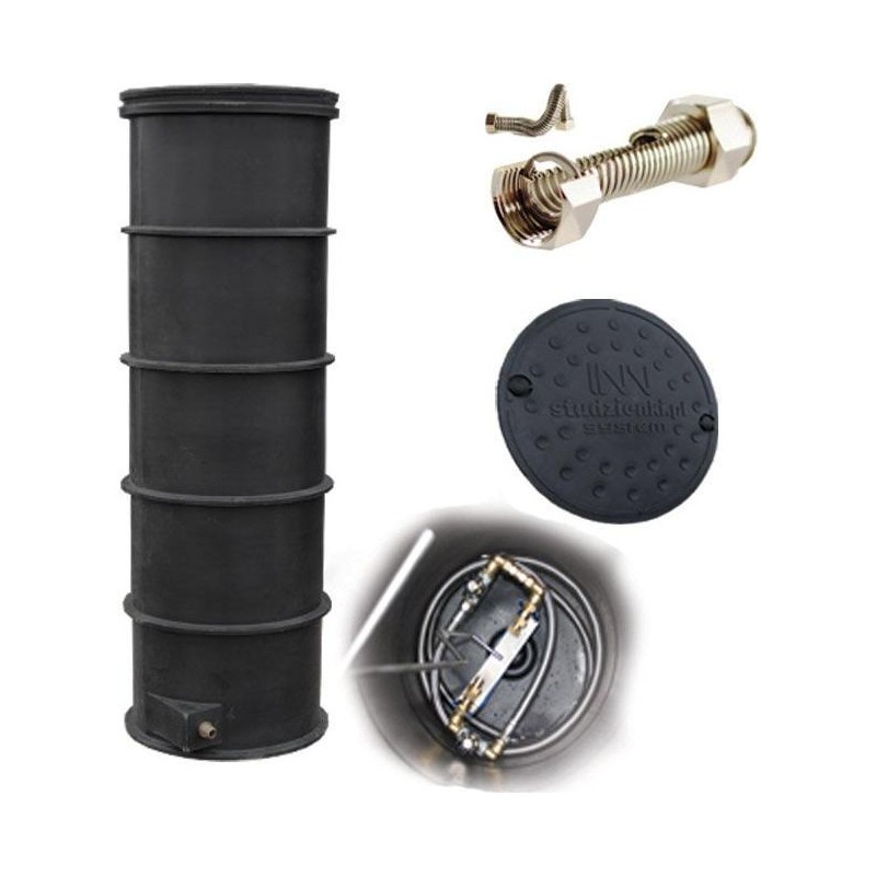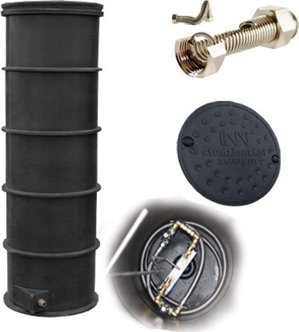 Dzięki zastosowaniu węży nierdzewnych elastycznych wodomierz umieszczony jest na dnie studni.