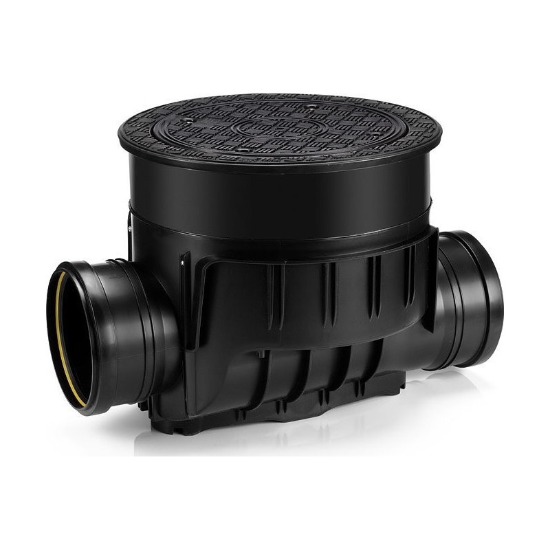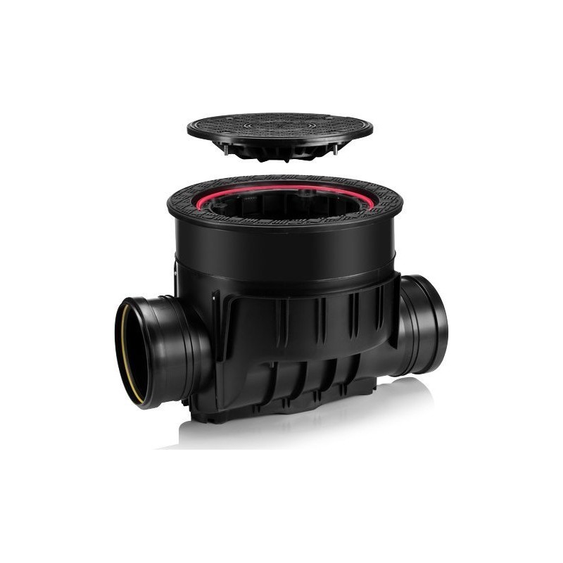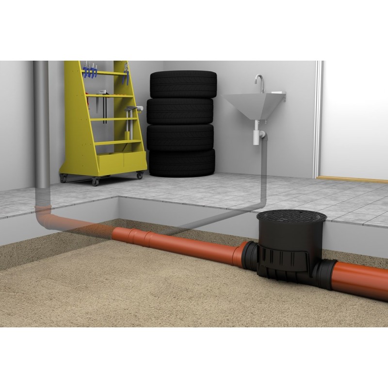 Karmat Kineta z zasuwą burzową do rur DN160 do zabudowy w posadzce, z pokrywą szczelną, kolor czarny