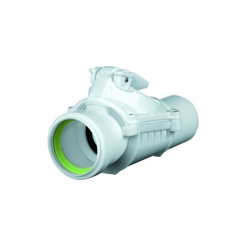 Zasuwę 50 w wersji A montujemy w poziomym ciągu rur odpływowych 50, przymocowanych do ściany za pomocą uchwytów. Tak zamontowany zawór przeciwzalewowy może zabezpieczyć jednocześnie kilka urządzeń, jeśli są podłączone do tej samej instalacji. Wersja A rozwiązuje problem zabezpieczenia trudno dostępnych miejsc, m.in. syfonów wannowych i brodzikowych.