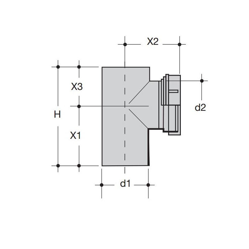 - Wymiary: [d1/d2]=50/50mm, [x1]=90mm, [x2]=85mm, [x3]=60mm, [H]=150mm