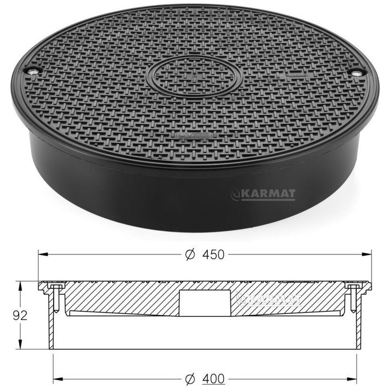 Karmat Pokrywa polipropylenowa klasa A15 (1,5t) DN 400mm, okrągła, uniwersalna -na rurę wznoszącą gładką 400mm sn2/sn4 lub karbo