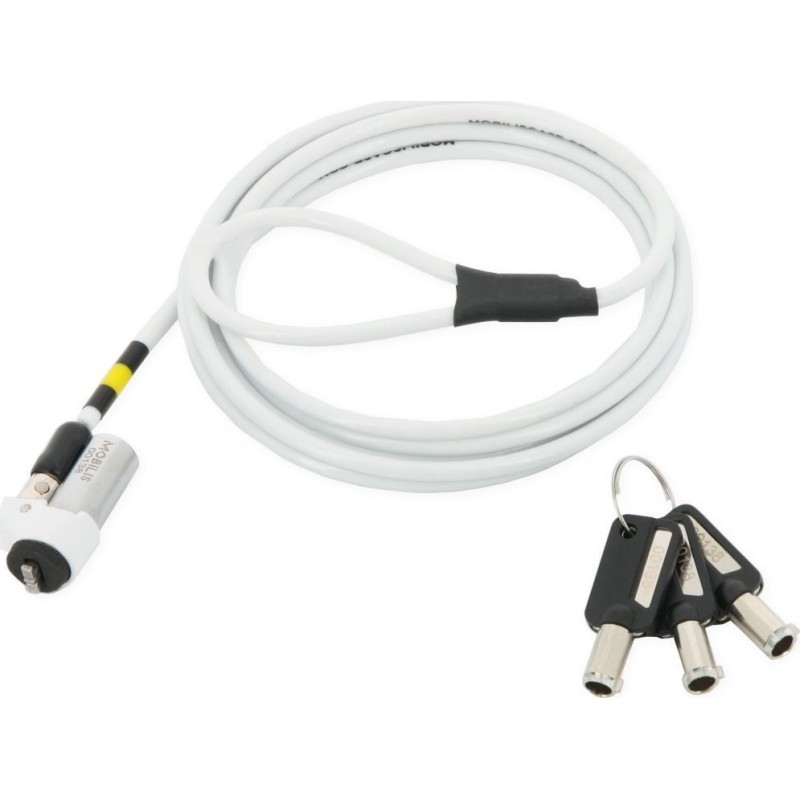 Mobilis 001328. Kolor produktu: Biały, Najlepsze zastosowania: Laptop, Typ zamka: Klucz. Długość kabla: 1,8 m, Średnica przewodu: 4 mm, Waga produktu: 138 g