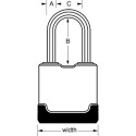 Laminowane stalowe kłódki z termoplastyczną powłoką idealnie sprawdzają się podczas ekstremalnie trudnych warunków atmosferycznych. Opatentowana ośmioboczna w przekroju szekla, wykonana jest ze stopu boru dzięki czemu ma o 50% większą odporność na przecięcie niż hartowana stal.