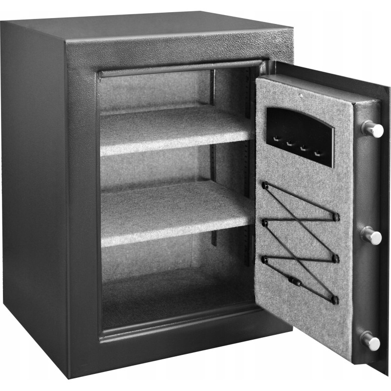 - Łatwy dostęp: Intuicyjny panel sterowania i przyjazne w obsłudze przyciski pozwalają na szybkie i bezproblemowe otwarcie sejfu.