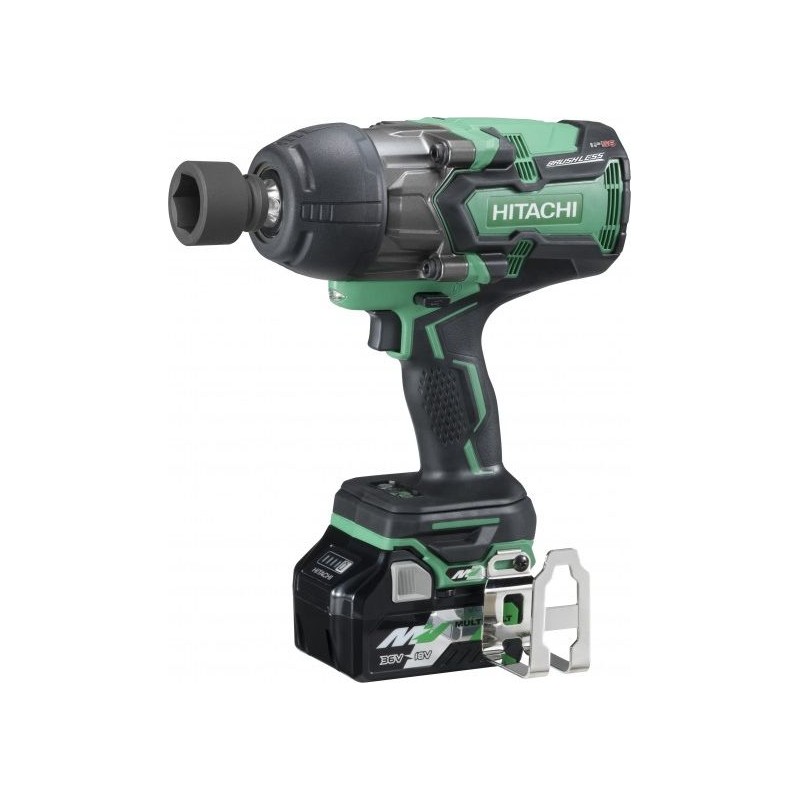 Akumulatorowy klucz udarowy Hitachi WR36DB WR to bardzo mocne elektronarzędzie o mocy 1050Nm wyposażone w bezszczotkowy silnik. Klucz naleyż do serii narzędzi zasilanych akumulatorem MultiVolt, który może pracować w dwóch klasach napięcia 36V (tylko narzędzia Multivolt) i 18V. Narzędzie przeznaczone jest do dokręcania i odkręcania wszystkich rodzajów śrub i nakrętek stosowanych do zabezpieczania elementów konstrukcyjnych. Akumulatorowy klucz udarowy HiKOKI jest rekomendowany profesjonalistom do ciężkich i skomplikowanych prac montażowych i warsztatowych.