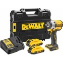 18V XR kompaktowy klucz udarowy 1/2" z pierścieniem zabezpieczającym, moment dokręcający 406Nm, moment zrywający 610Nm, 0-2500 obr/min, 0-3550 ud/min,4 tryby dokręcania, 2 akumulatory 2Ah, ładowarka, TSTAK