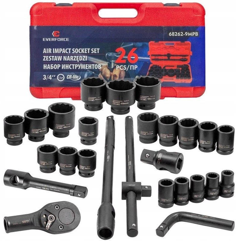Zestaw narzędzi udarowych 26el. 3/4" (17-50mm) i 1" (55-65mm) – Niezbędnik każdego majsterkowicza