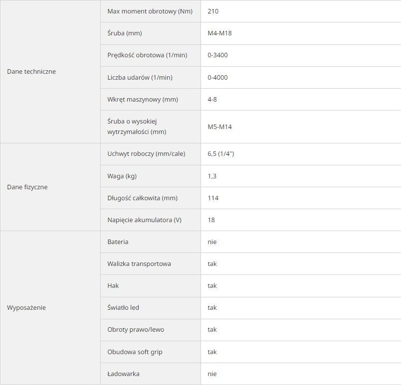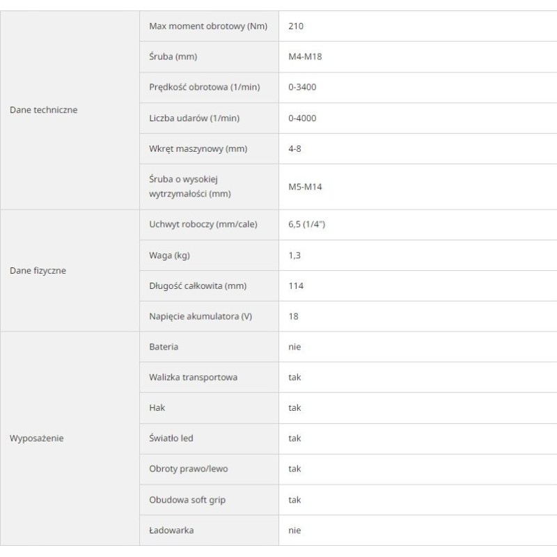 - Zasilany akumulatorem Li-Ion o napięciu 18V