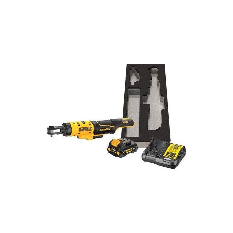 Klucz udarowy DeWalt DCF504L1G jest kompatybilny z akumulatorami Li-Ion XR 12V, co zapewnia elastyczność oraz możliwość szybkiej wymiany akumulatora. W zestawie znajduje się akumulator o pojemności 3Ah, co gwarantuje długotrwałą pracę bez przerw.