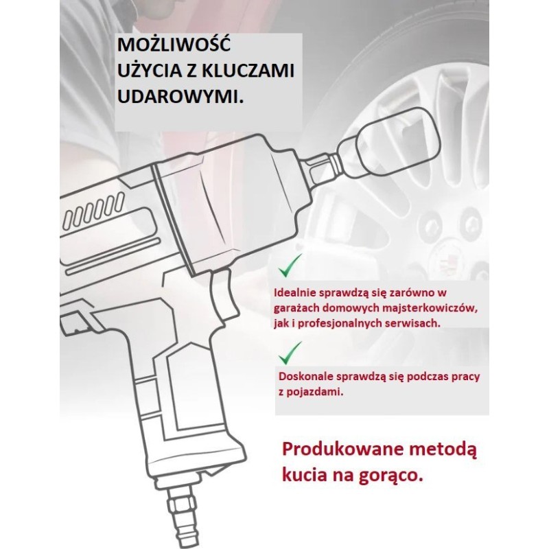 Nasadki wyposażone w system AS-Drive, zwiększający maksymalny moment o 25%, przy pełnej ochronie obrzeży nakrętek, nasadki z dwutonowym wykończeniem powierzchni.