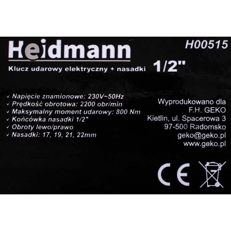 Klucz udarowy Heidmann Klucz udarowy elektryczny 1/2" + nasadki typ H(5)