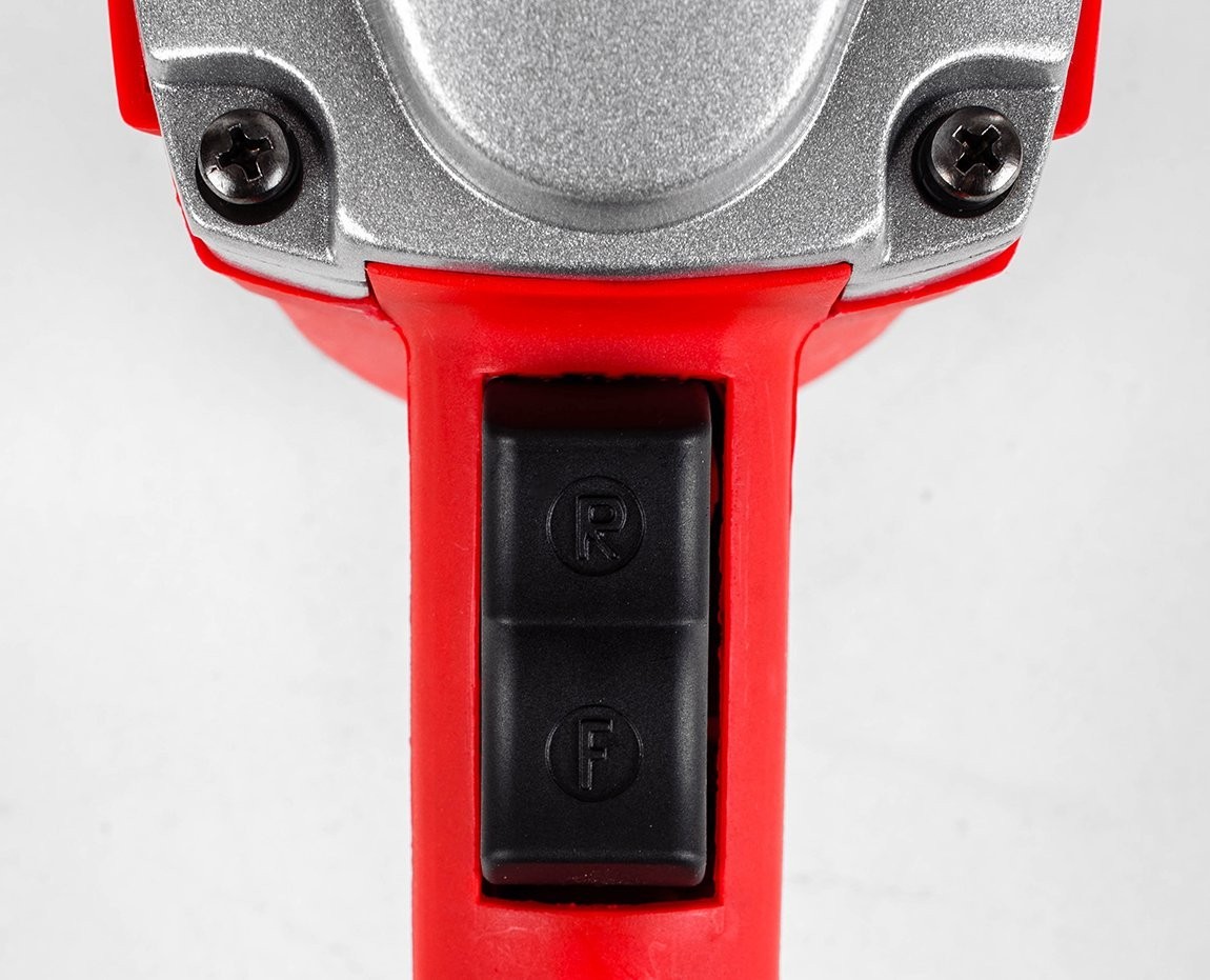 Klucz został wyposażony w intuicyjny przełącznik przerzutowy, który pozwala na łatwą zmianę kierunku obrotów jedną ręką. To praktyczne rozwiązanie zwiększa komfort użytkowania i sprawia, że praca staje się bardziej efektywna.