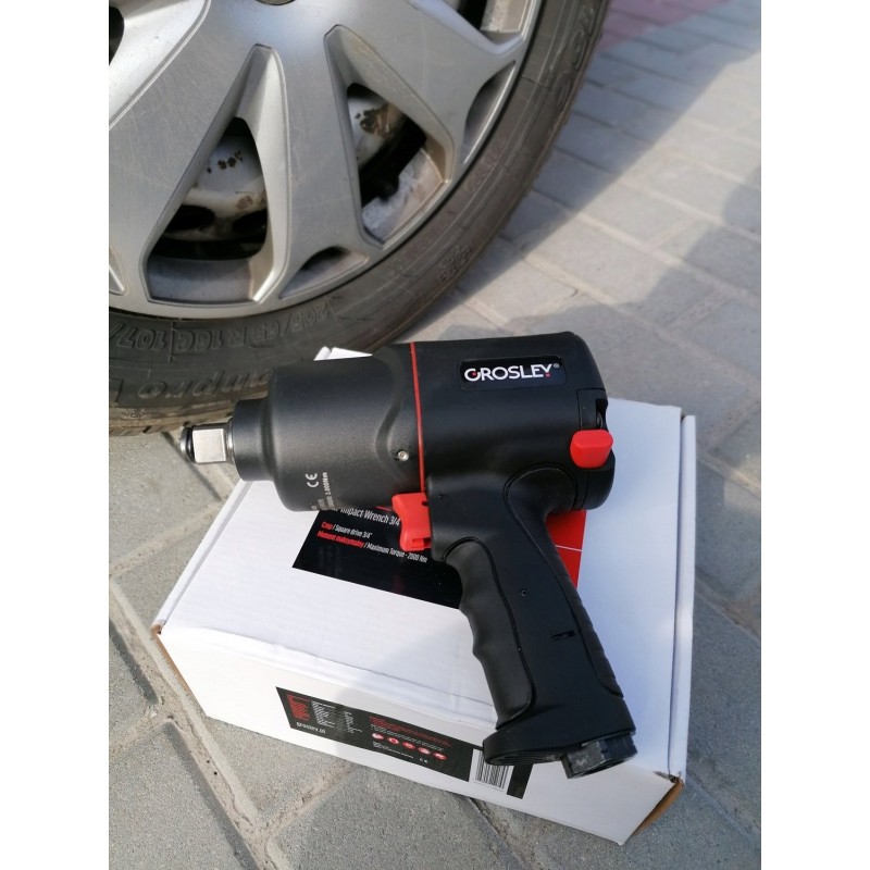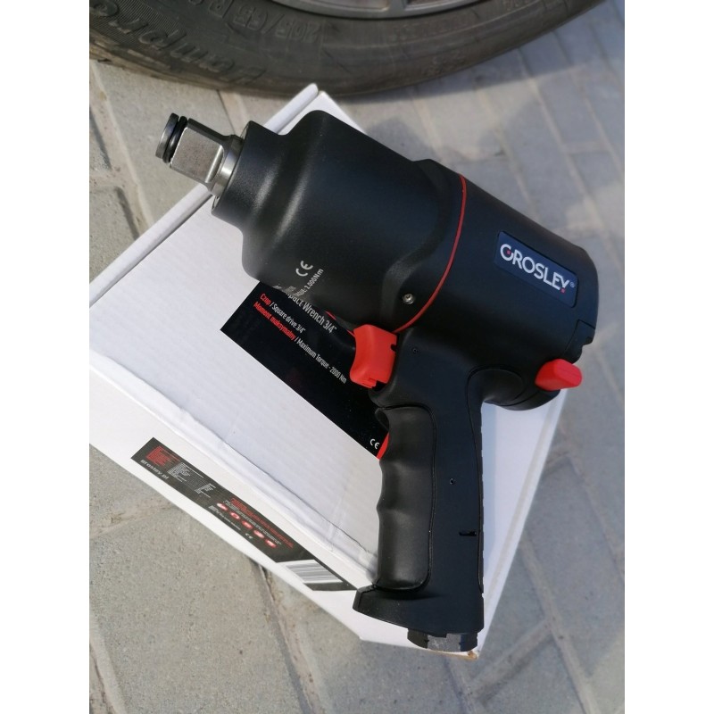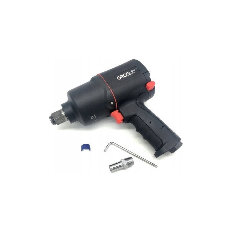 Młot pneumatyczny 3/4" marki Grosley z maksymalnym momentem obrotowym 2000 Nm. Służy do odkręcania i przykręcania śrub i nakrętek. Nadaje się do każdego warsztatu samochodowego jak i do zastosowań produkcyjnych. Młot posiada kompozytową obudowę przez co mimo gabarytów waży tylko 3,0 kg oraz posiada ergonomiczną antypoślizgową rękojeść. Wydatnie wpływa to na skuteczność i efektywność działania mechanika w długim cyklu pracy. Urządzenie posiada system zmiany obrotów lewo-prawo, co więcej został on opracowany w sposób eliminujący możliwość przeciążenia gwintów dokręcanych śrub. Młot przystosowany jest do pracy w warunkach serwisowych i przemysłowych pod bardzo dużymi obciążeniami. Dużym atutem jest dwumłotkowy system udarowy Twin Hammer.
