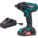 Wytrzymały klucz udarowy na baterie, o maksymalnym momencie obrotowym wynoszącym 250 Nm. Wyposażony jest w praktyczną latarkę LED i magnes do łatwiejszego przechowywania. Zasilany akumulatorem Li-Ion o dużej pojemności i posiada ergonomiczny uchwyt z antypoślizgową powierzchnią.