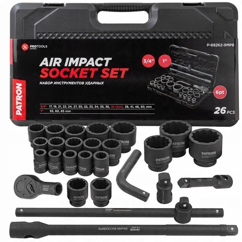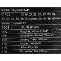 Zestaw narzędzi udarowych 26el. 3/4" (17-50mm) i 1" (55-65mm) (12-kątnych)