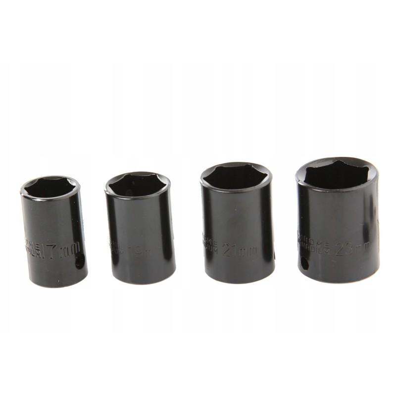 - Nasadki w rozmiarach 17, 19, 21 i 23 mm