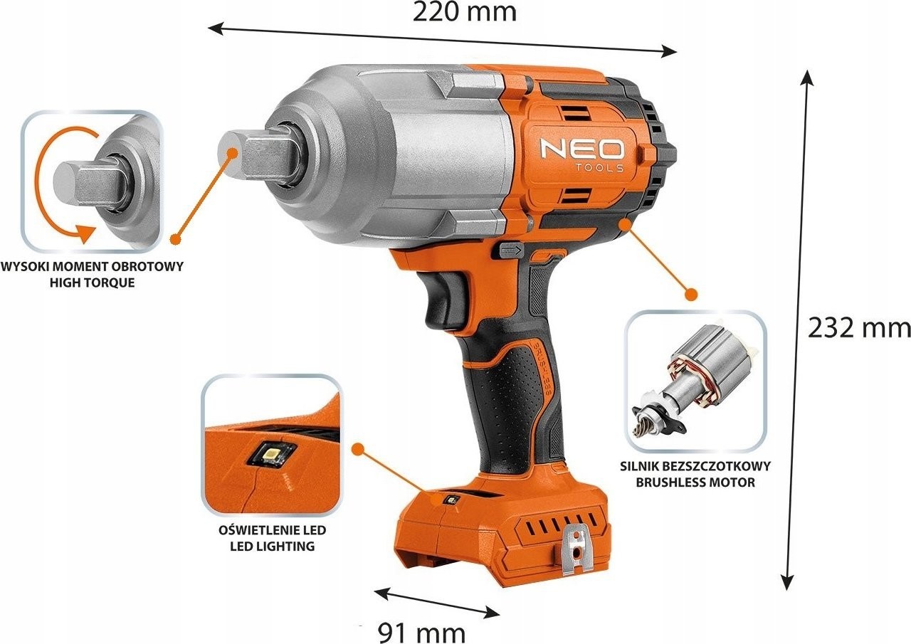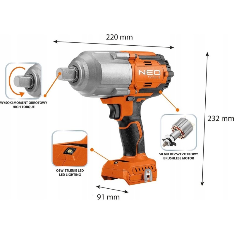Klucz udarowy Neo Klucz udarowy 1100Nm Energy+ 18V – Wydajność i moc w Twoich rękach