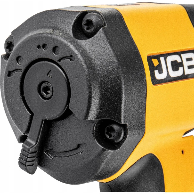 Klucz udarowy JCB wyposażony jest w praktyczne pokrętło do regulacji prędkości oraz kierunku pracy, co znacząco ułatwia jego obsługę i dostosowanie do indywidualnych potrzeb użytkownika.