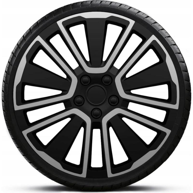 Elegancki czarny kolor kołpaków sprawia, że doskonale komponują się z różnymi stylami samochodów. Dzięki nim Twój pojazd zyska nowy, atrakcyjny wygląd, który na pewno przyciągnie spojrzenia na drodze.