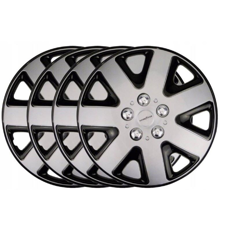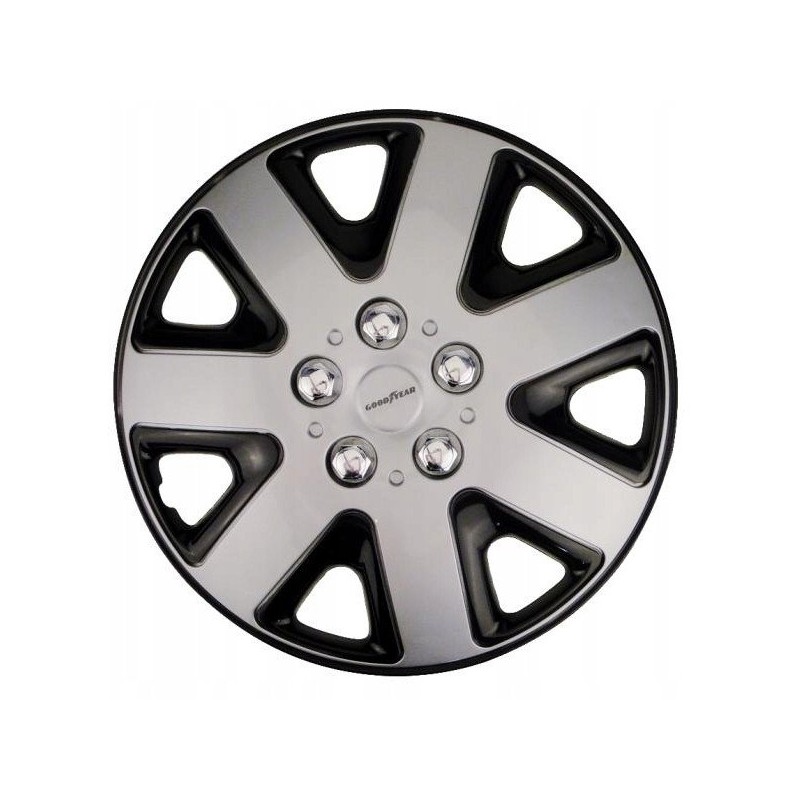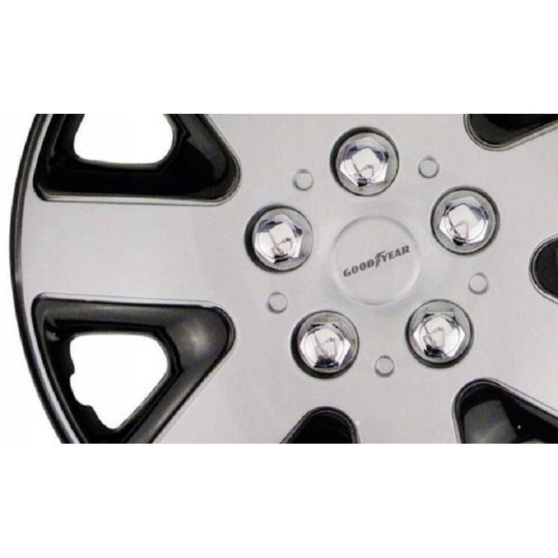 Kołpaki GOODYEAR Flexo o średnicy 16 cali w kolorze srebrno-czarnym to doskonałe akcesoria samochodowe, które nie tylko zabezpieczają felgi, ale także nadają pojazdowi stylowy wygląd. Dzięki nowoczesnemu designowi, przypominają felgi aluminiowe, co sprawia, że samochód zyskuje unikalny charakter.