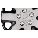 Kołpaki wyróżniają się eleganckim, dwukolorowym designem, który dodaje stylu i nowoczesności. Srebrno-czarny efekt wizualny sprawia, że po zamontowaniu, pojazd prezentuje się znacznie lepiej, a kołpaki są zarówno estetyczne, jak i funkcjonalne.