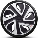 Kołpaki o średnicy 15 cali to świetny wybór dla każdego kierowcy, łączący funkcjonalność z atrakcyjnym wyglądem. Dzięki ich uniwersalnemu designowi, pasują do wielu modeli samochodów, w tym znanych marek jak Toyota, Audi, Seat, Ford, Kia, Skoda, Opel, VW, Fiat, Peugeot i Citroen. W zestawie znajdziesz cztery eleganckie kołpaki w czarno-srebrnym wykończeniu, które z pewnością dodadzą charakteru Twojemu pojazdowi.